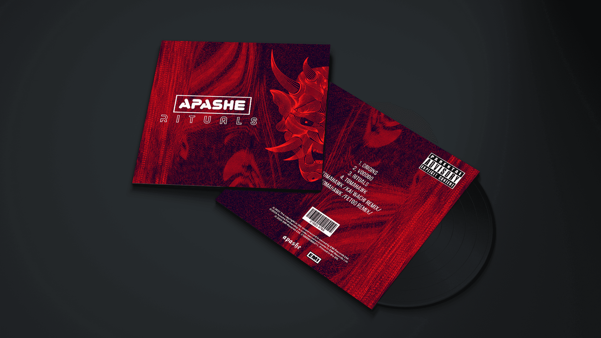 My intention was to capture the album's otherworldly aspects and vibes. For inspiration, I incorporated an oni mask rooted in Buddhist folklore, symbolizing protection against malicious spirits.